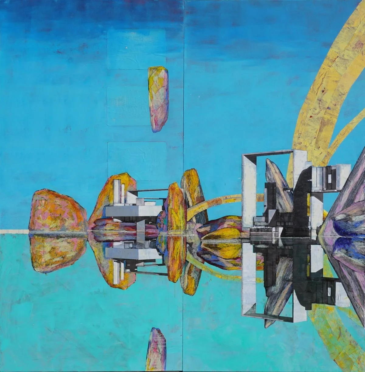 "Possibility of an Island" Acrylic & Collage on Board | Frederick Pichon