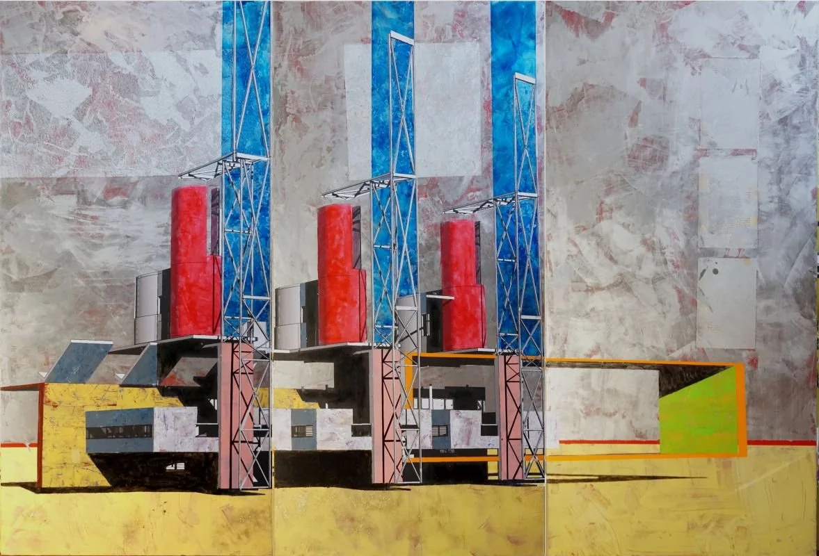 "Mars Settlement" Acrylic & Collage on Board | Frederick Pichon