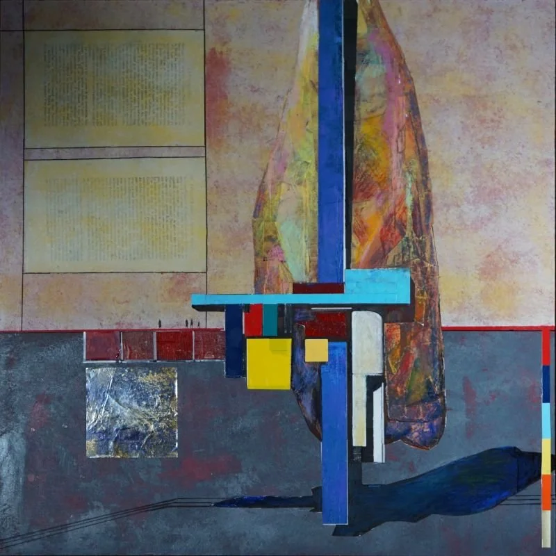"Folds of Time" Acrylic & Collage on Board | Frederick Pichon